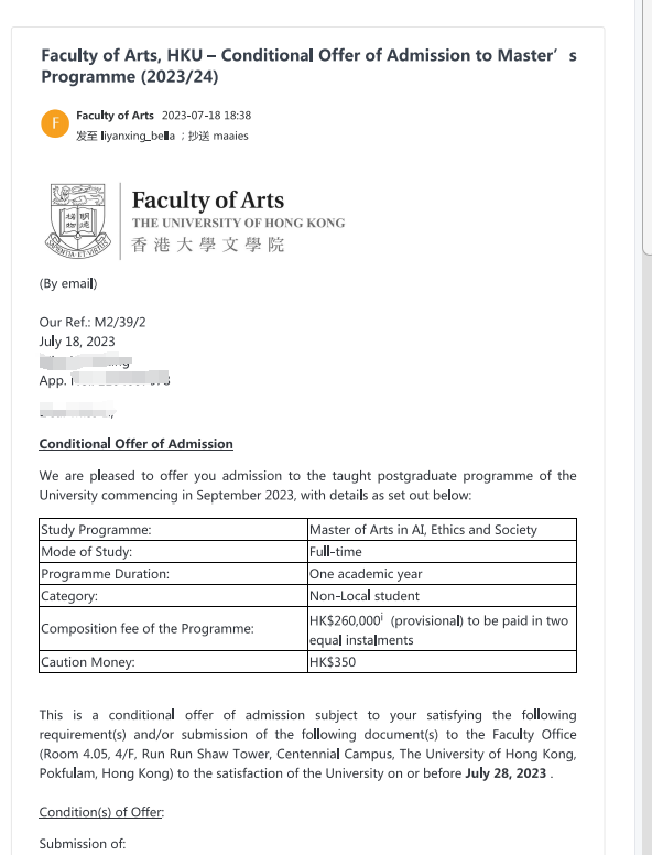 录取院校:香港大学